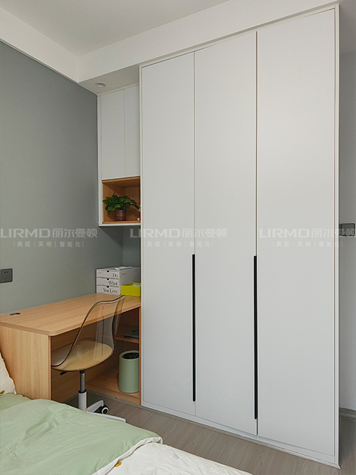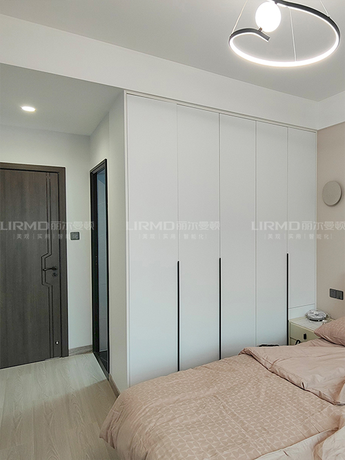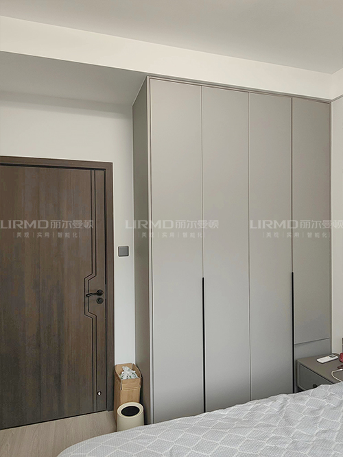 臥室做一門到頂衣柜,pet膚感柜門搭配煙熏尤加利柜體,簡潔又大方~