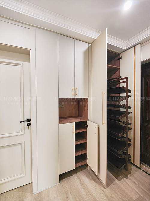 玄關柜做個雙面旋轉鞋架,空間直接大一倍。
