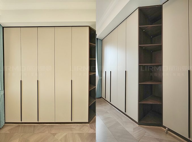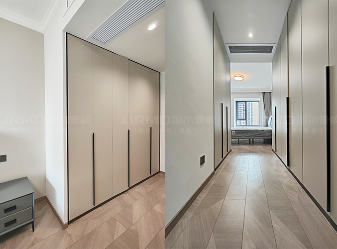 柜子一門(mén)到頂設(shè)計(jì),實(shí)木柜體搭配PET膚感柜門(mén),質(zhì)感超不錯(cuò),多組設(shè)計(jì)更是實(shí)現(xiàn)收納需求,