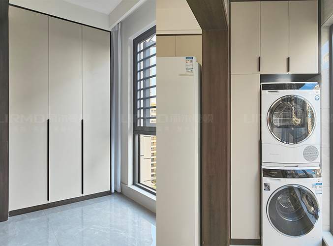 一門(mén)到頂柜子設(shè)計(jì),和內(nèi)嵌式洗衣機(jī)設(shè)計(jì),方便實(shí)用