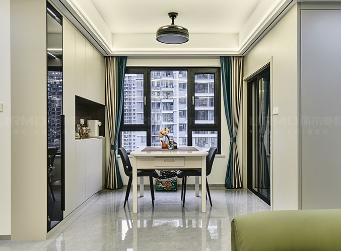 更顯極簡。左側(cè)玻璃展示柜柜門的設計更具設計感。