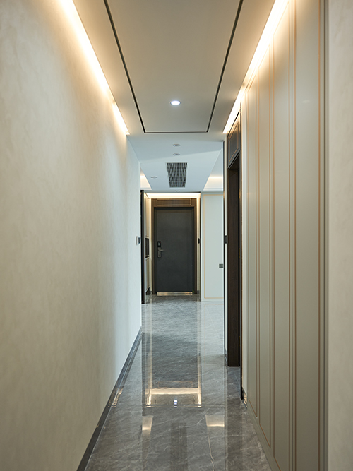 巧用帶燈和射燈,走廊內(nèi)嵌燈帶氛圍感直接拉滿,溫馨又好看。