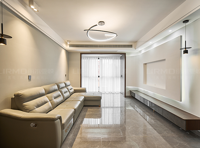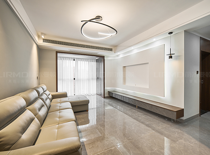 電視背景懸浮柜設(shè)計(jì),電視做內(nèi)嵌設(shè)計(jì),不占空間,吊燈設(shè)計(jì),增強(qiáng)照明實(shí)用性的同時(shí)