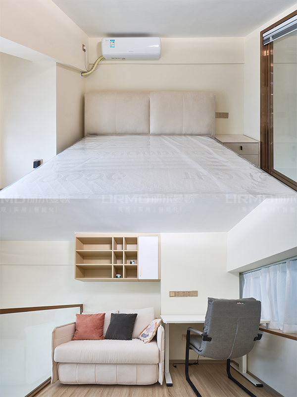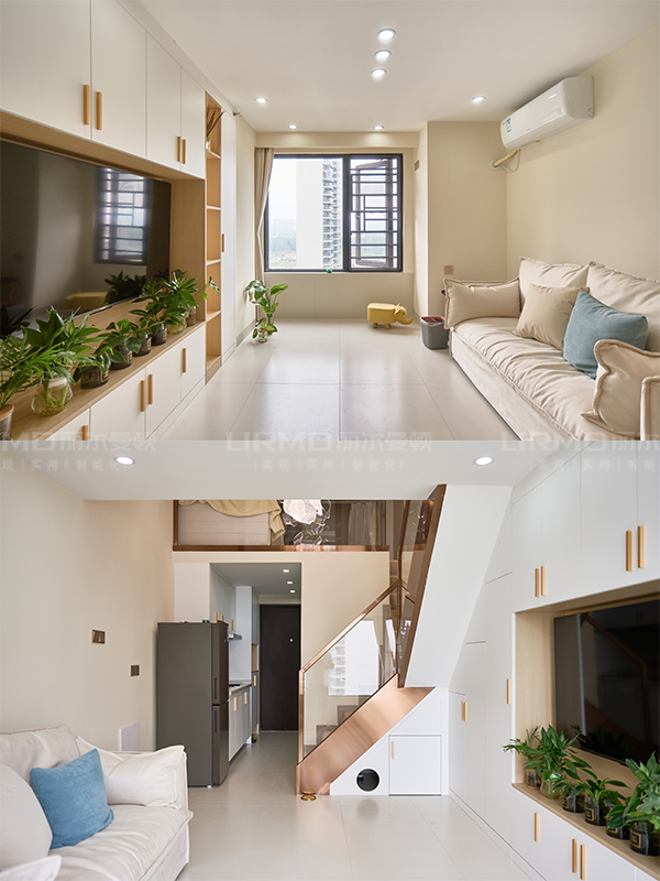 全房共定制了5個柜子,柜體采用足18厚杉木芯板,柜門采用LSB板PET膚感柜門,一門到頂,五金使用原裝進口的百隆五金