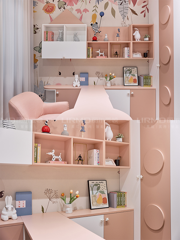 整個空間以粉色和米白色為主基調,讓整個臥室充滿浪漫可愛,一進入就淪陷那種