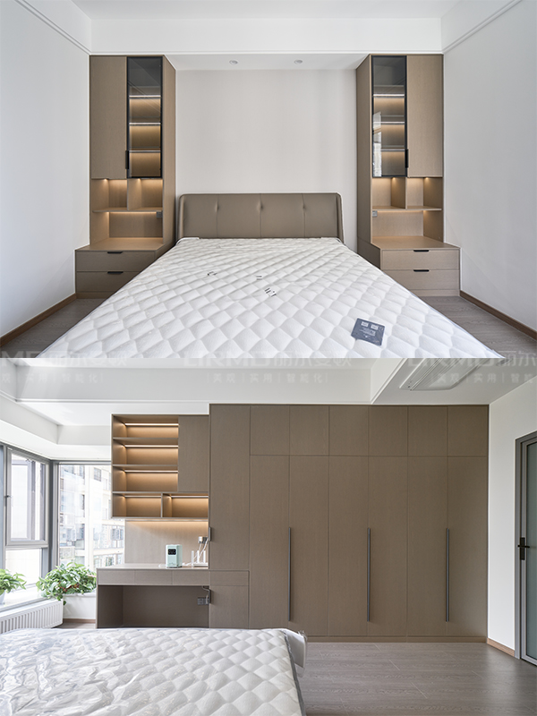 主臥衣柜、主臥梳妝臺、主臥化妝品收納柜、兩個主臥到頂床頭柜、次臥衣柜、以及同色墻板、同色到頂房門)