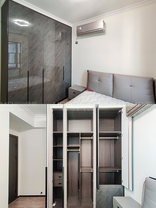 全屋高端定制:柜體板材18厚杉木實芯板,柜門有pet膚感、高光、超晶、五金使用原裝進口奧地利百隆五金