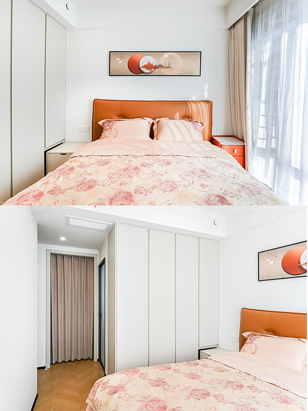 簡約摩卡棕碰撞大面積的留白,空間靈動不壓抑。搭配同色軟裝、掛畫,溫馨滿滿。