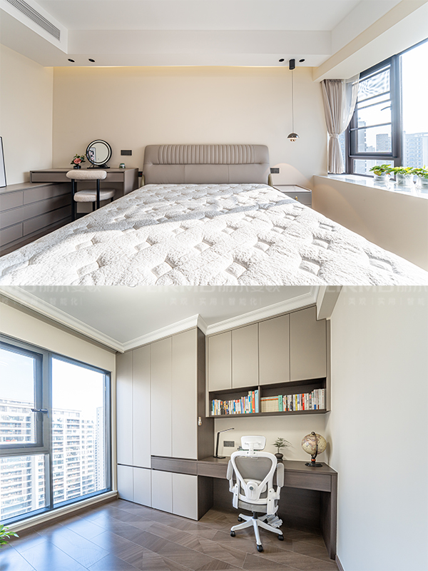 長沙靠譜裝修公司,長沙靠譜全屋定制,臥室衣柜加梳妝臺,現代風,